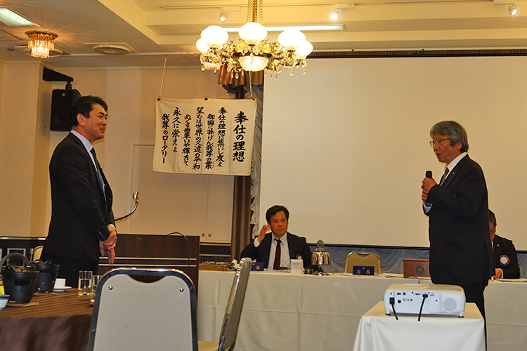 守野委員長からは新入会員もたくさん入会されてきたので改めて私を知っていただきたいと言われ、文理中学の寮生活から始まり大学、社会人、結婚、現在までの紹介や、会長や米山カウンセラーの経験談も話していただきました。