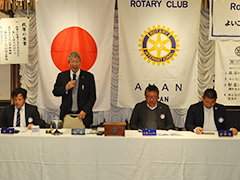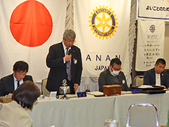 この週末には阿南南ロータリーの50周年式典がございます。何かと皆様におかれましてはお忙しいかとは思いますが、ホストクラブとして毅然とした態度で祝賀の意を表したいと思いますので、ご出席のほどよろしくお願い申し上げます。以上会長報告でした。