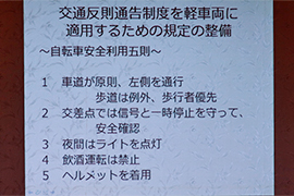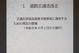 特殊詐欺や軽車両とされる自転車での反則等の説明がありました。 |