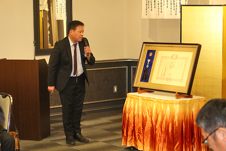 若木会員の令和7年度の瑞宝双光章受章、誠におめでとうございます。阿南ロータリークラブから叙勲者が居られることは、大変、光栄と存じますとともに、大きな誇りとも言えます。永年の、保護司としてのご活躍されていることに敬意を表すことは勿論、我々の人生の道標としてこれからも輝き続けられることをご祈念申し上げます。