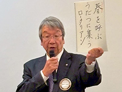 皆さん、こんにちは。本日もお忙しい中、ご参加いただき誠にありがとうございます。先週の移動例会にも多くの参加者をいただき、重ねて皆様には御礼申し上げます。埋め尽くされた会場を見て大変感動いたしました。また、ご紹介をするのを忘れてましたが、ロータリー俳句で形部会員が初めての最多得点句を得られ、おめでとうございました。これからも名句をどんどん誕生させていただきたいものです。俳句の仲間が増えたこと大変喜ばしいことだと思います。どうかよろしくお願いいたします。