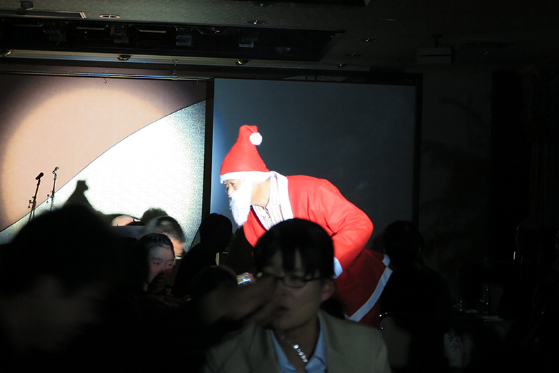 若木ガバナー補佐による乾杯の後、勝瀬晶人さんのマジックショーや濱垣サンタさんの登場、ビンゴゲームにカラオケと、会場は大変盛り上がりました。