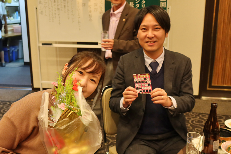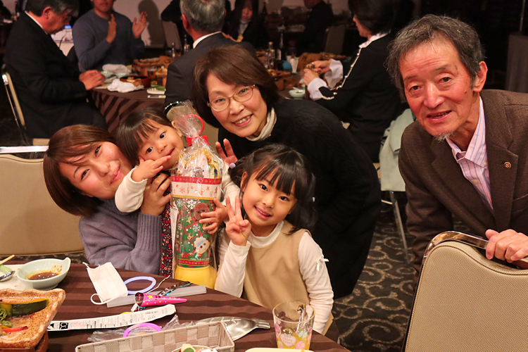 12月20日 例会の後、クリスマス家族会が行われました。サンタクロースから子供たちにプレゼントが配られ楽しいひと時を過ごしました。 <会長挨拶> 皆様こんばんは。本日はクリスマス家族会ということで、コロナ禍での開催ですが70余名の会員ご家族にお集まりいただき、また子どもさん15名もご参加くださり誠にありがとうございます。歌のお姉さん方も来られていますので、一緒に歌ってくださいね!またビンゴゲーム等催し物も盛りだくさんですので十分にお楽しみください。 |