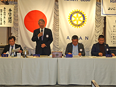 この週末には阿南南ロータリーの50周年式典がございます。何かと皆様におかれましてはお忙しいかとは思いますが、ホストクラブとして毅然とした態度で祝賀の意を表したいと思いますので、ご出席のほどよろしくお願い申し上げます。以上会長報告でした。